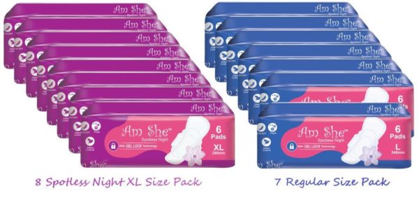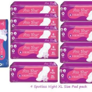 Am She Dry Net Pad prevent moisture at its best, Spotless Night With Gel Lock Technology leaving you feeling dry all day. It has specifically designed absorbent funnels that trap liquids inside and prevent leaking, making it ideal pads for ladies/women High Flow Days. The top layer aids the pad in absorbing strong flow within 3 seconds, providing a Dry sensation. We are offering sanitary pads combo.