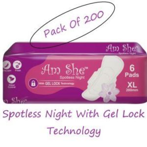 Am She Dry Net Pad prevent moisture at its best, Spotless Night With Gel Lock Technology leaving you feeling dry all day. It has specifically designed absorbent funnels that trap liquids inside and prevent leaking, making it ideal pads for ladies/women High Flow Days. The top layer aids the pad in absorbing strong flow within 3 seconds, providing a Dry sensation. We are offering sanitary pads combo.